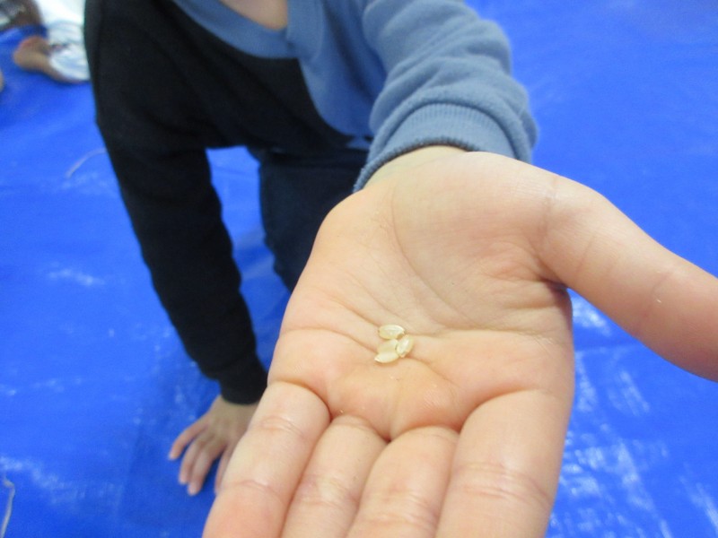 5月の種まきから今回まで、泥んこになっての田植え、自分でかまを使っての稲刈りと、継続した体験を通して、一つ一つの取り組みに意味があることを知り、たくさんの力を身につけました。