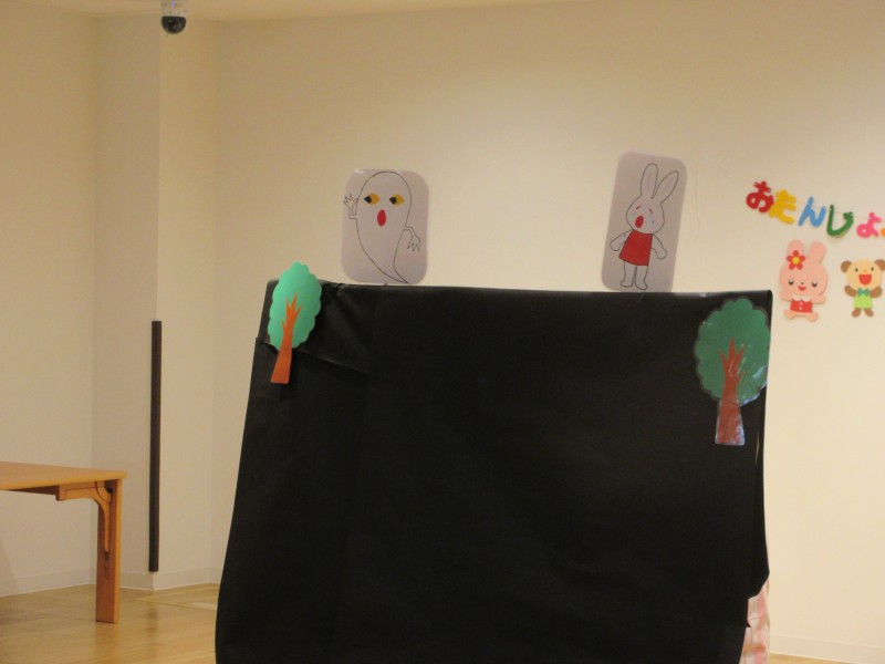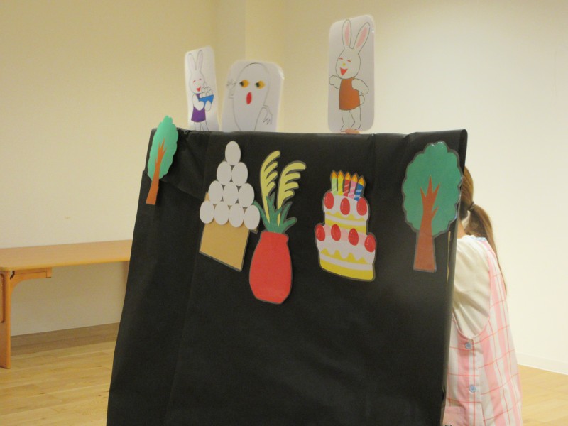 おばけとうさぎが出てくると、「おばけだあ」「なんだろう」と話しながらみていました。