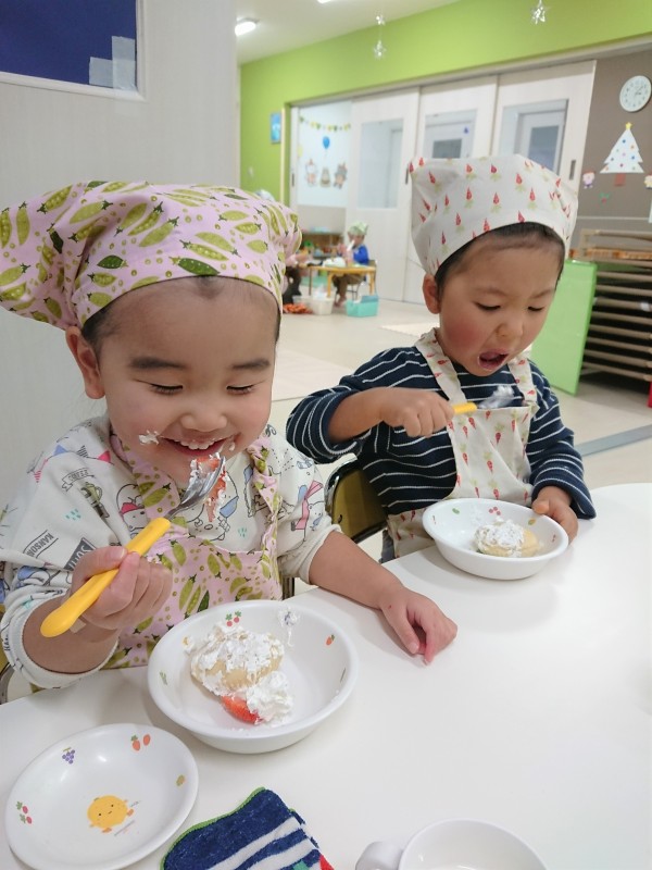 うさぎ組さんは、初めて自分で作ったものを食べました!初めての経験に嬉しそうな様子でしたよ😆