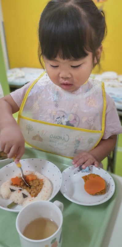 「かぼちゃの形してるね!おいしそ~🍴」