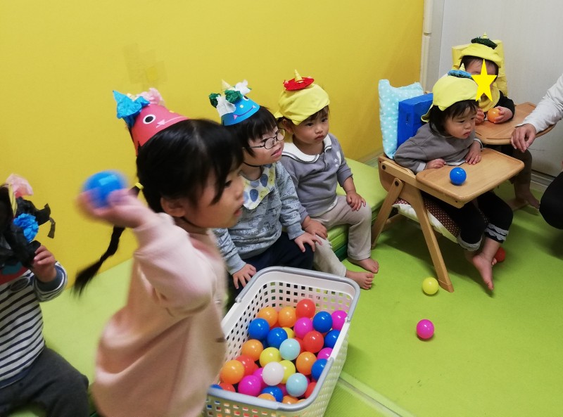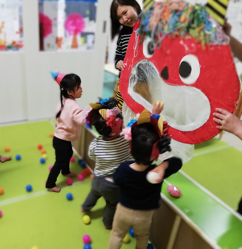 カラーボールを投げて”自分たちのお腹の中にいる鬼”を