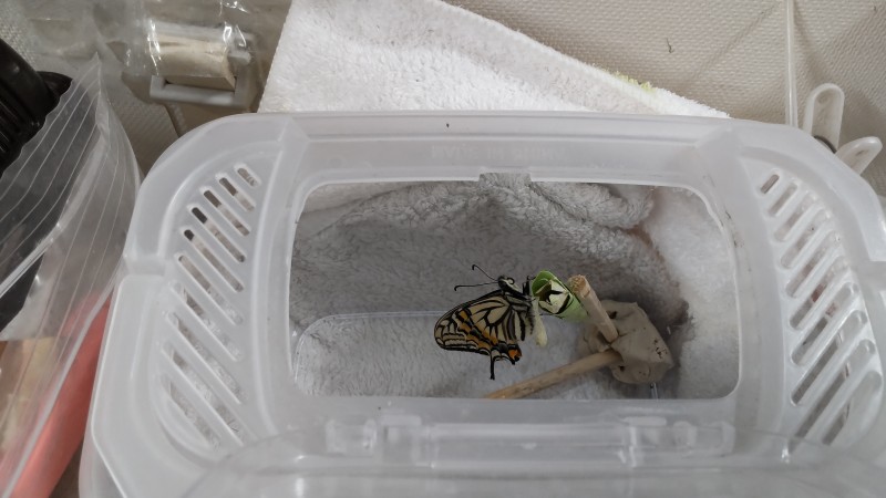 ☆飼育していたアオムシの満夫(みつお)が卒園式の前日にチョウになりました☆