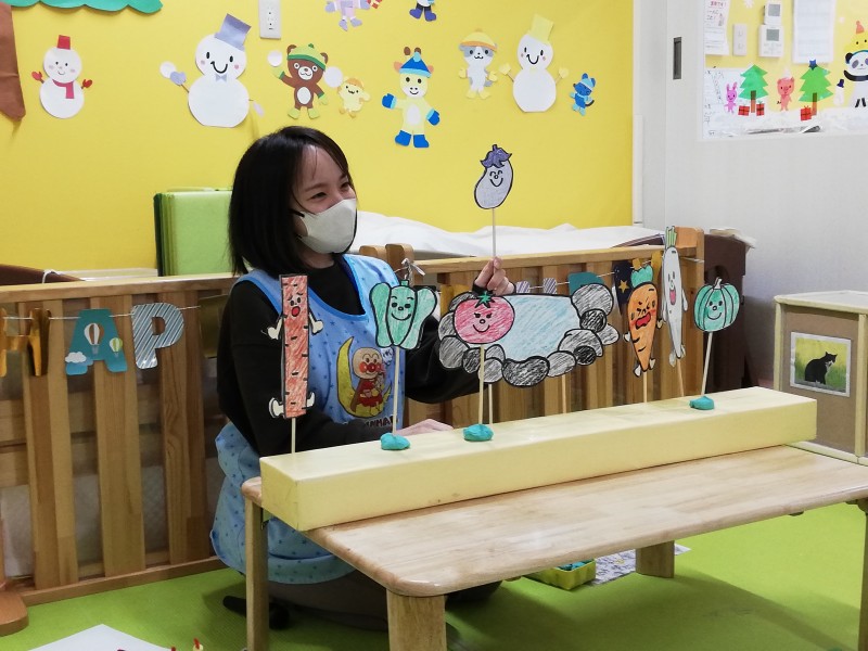 先生からの出し物はペープサート!「だいこん、にんじん、ごぼう」です。