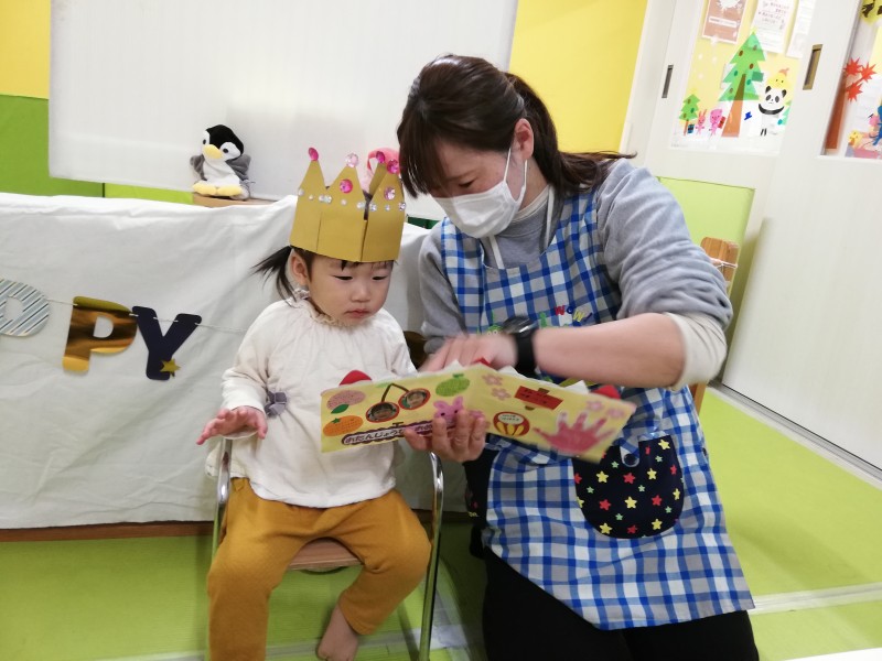 お友だちや先生から「おめでとう」の言葉を掛けてもらいとっても嬉しそうな表情です😝