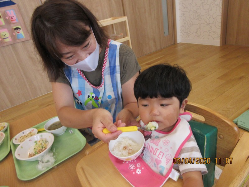 パパ先生ママ先生と一緒に食べるとおいしい給食がもっとおいしくなるね😚