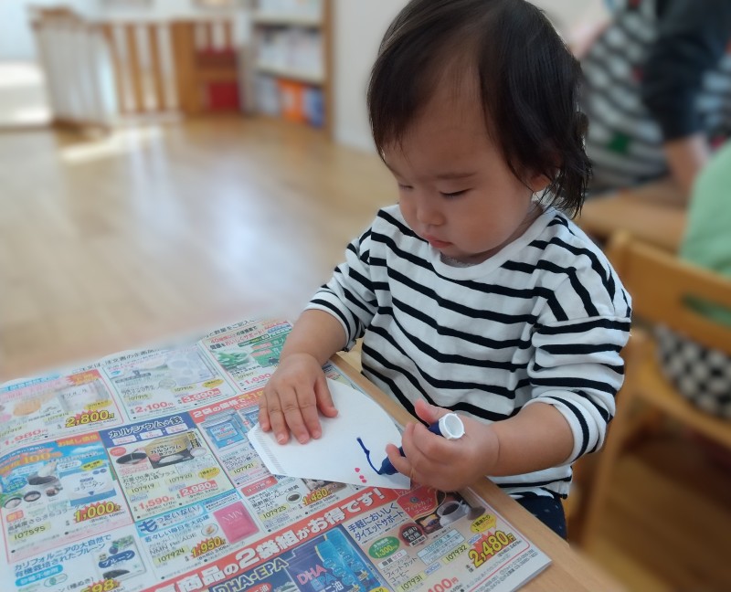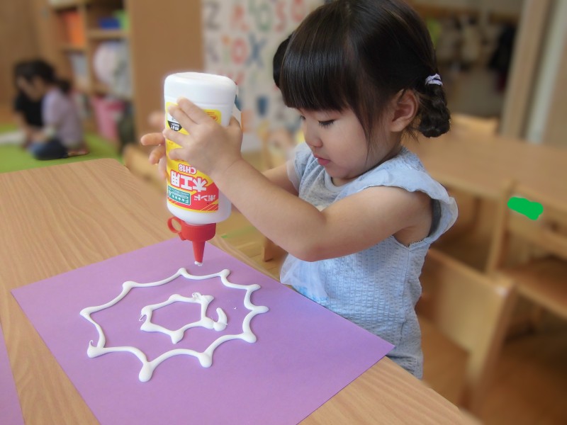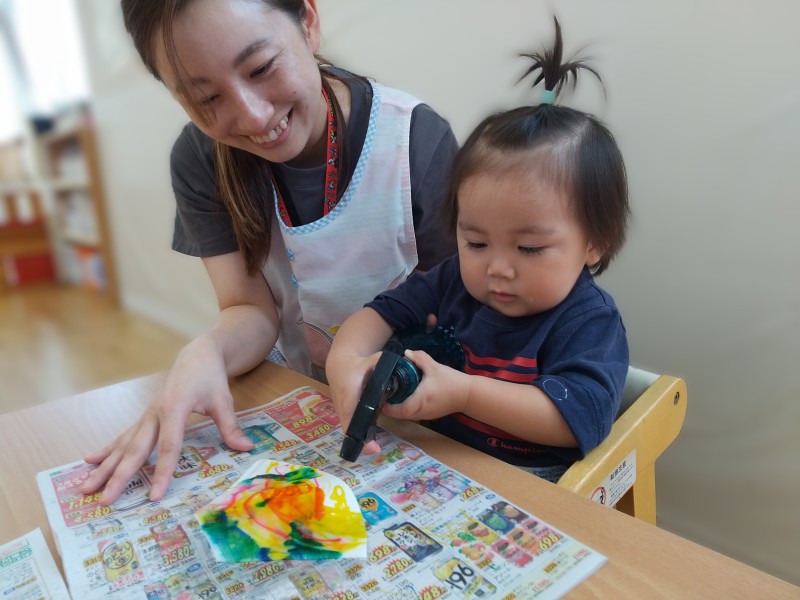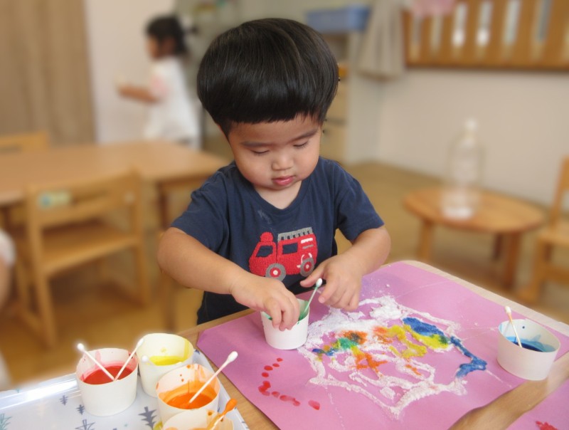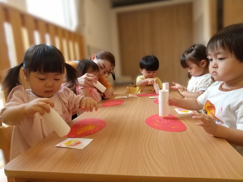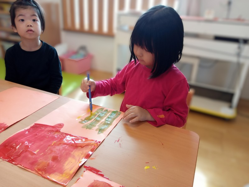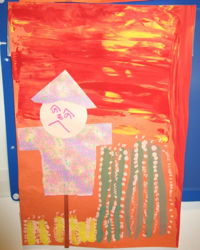 絵の具で稲を描いたり、折り紙でかかしを作ったりして