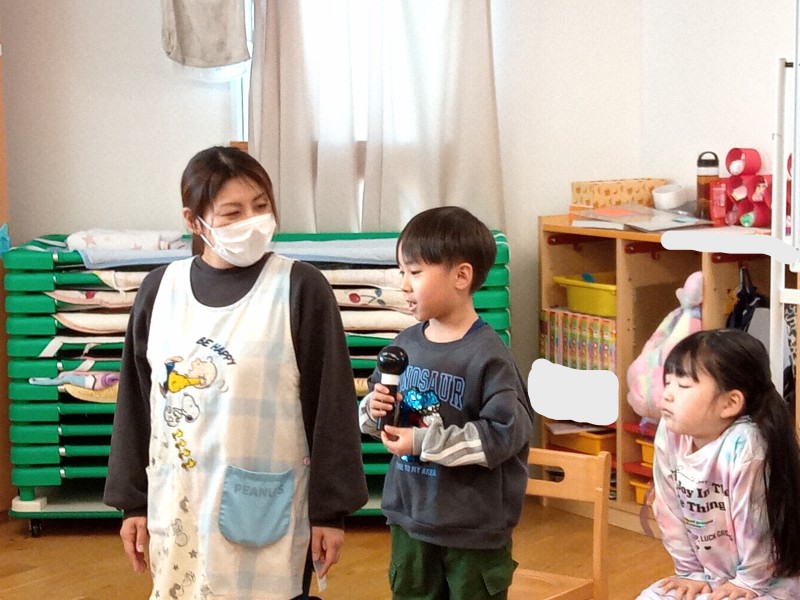 名前・何歳になったか・好きな食べ物・好きな遊びを聞かれました😊