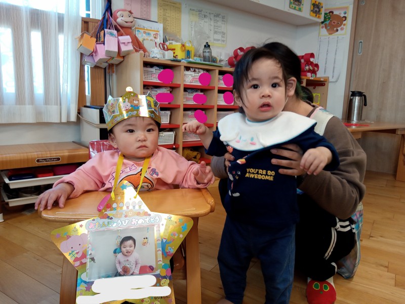 🎵たんじょうび のうたも歌ってもらい 誕生児さんたち嬉しそうでした😆