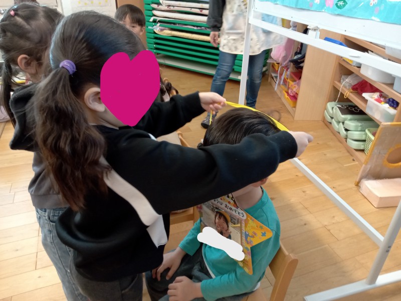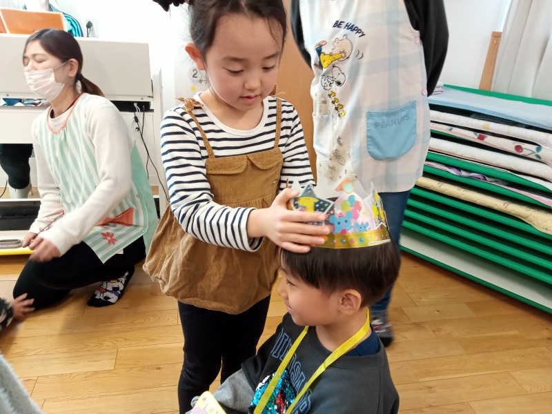 お友だちから冠とお誕生カードを受け取り、写真撮影📷✨