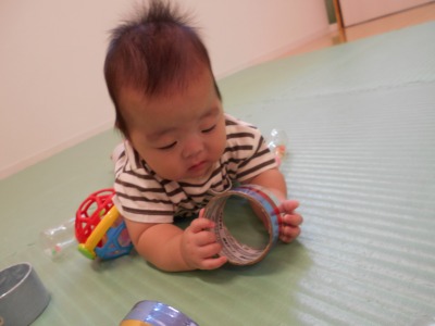 起きている時に玩具をいじったり、ずり這いをしたり、