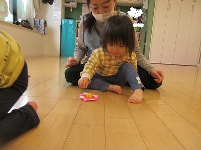 折り紙で作ったコマに夢中ですが、