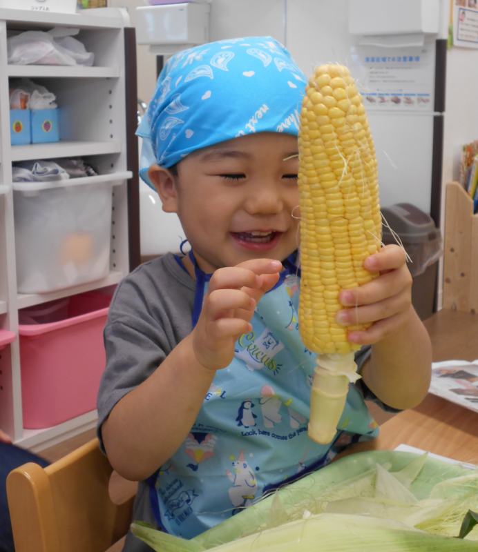 先月の食育は「とうもろこしの皮むき体験」でした🌽![]()