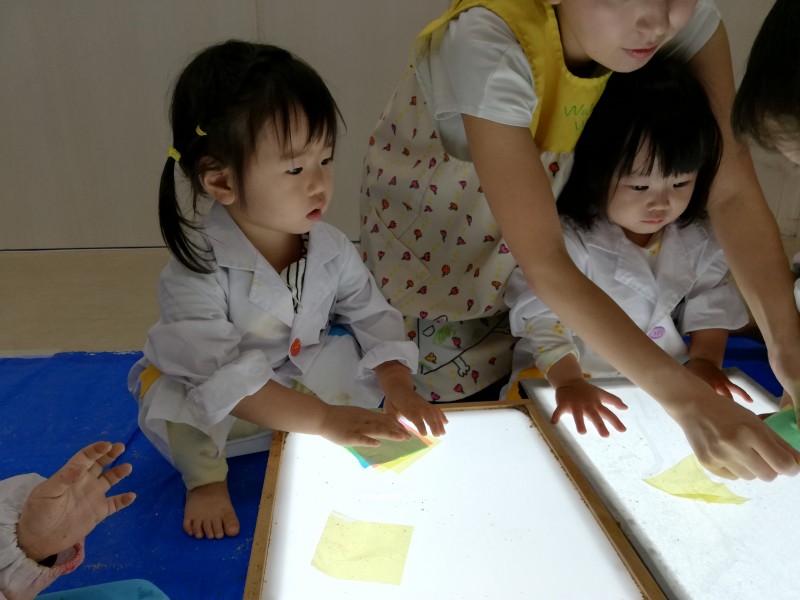 様々な素材を光にあてて、どうなるのかなとキラキラした表情で楽しんでいました💕