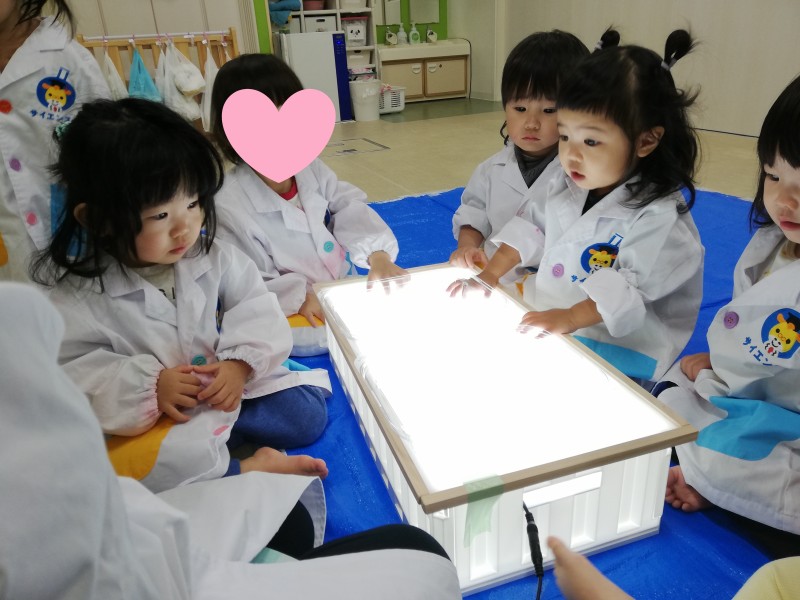 今月は「光をあててみよう」をテーマにライトテーブルを使って色々な物を見ていきました😊