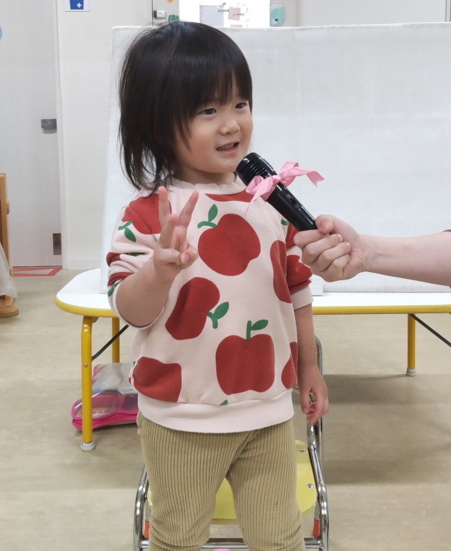 2月は2歳児クラスのお友だちが1人、前に出てインタビューを受けました🎤