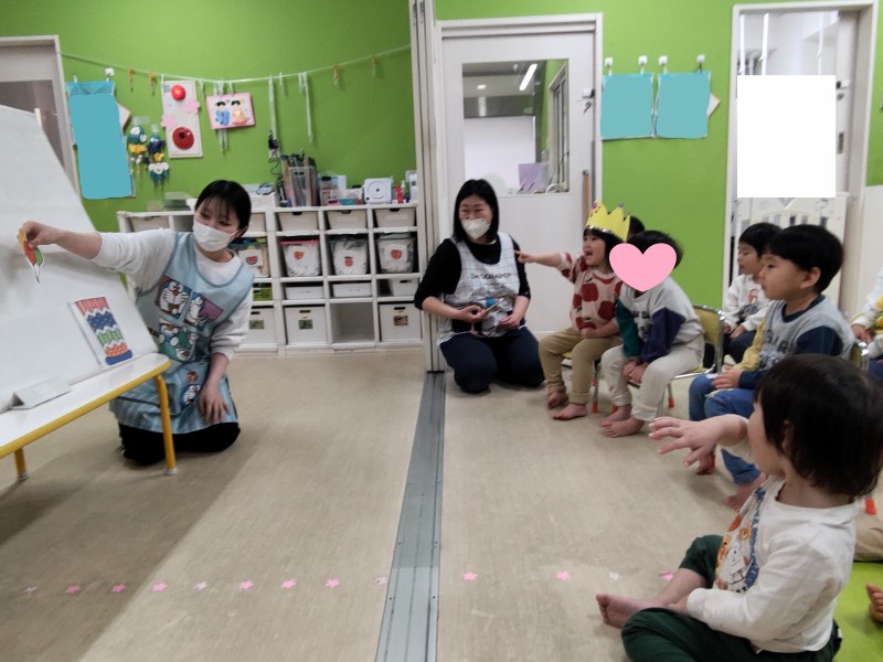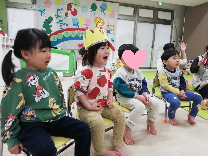さて今回は2月のお誕生会と1歳児クラスのサイエンスの様子をご紹介したいと思います。