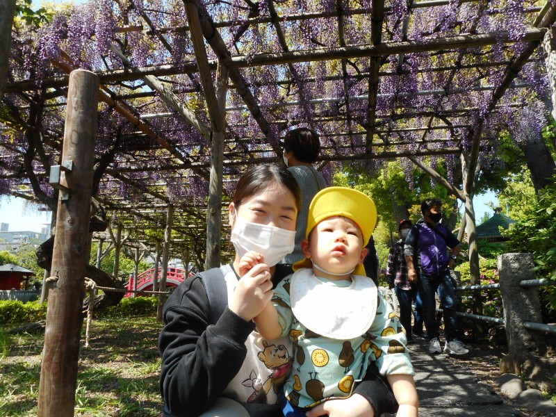 お散歩では亀戸天神の藤祭りへ行ってきました。