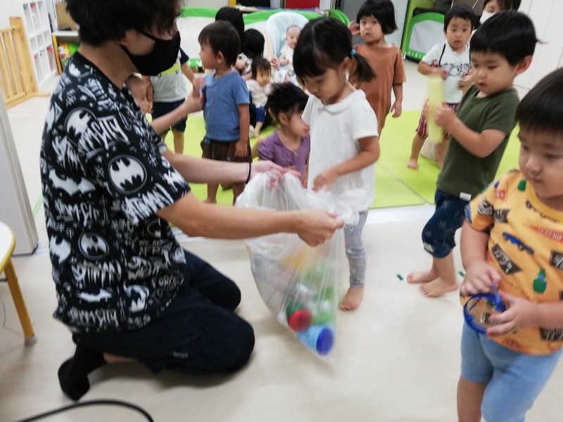 そして、水あそび用の玩具をみんなで袋に入れて、お片づけをしていよいよさよなら