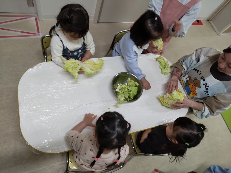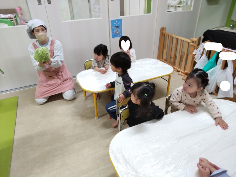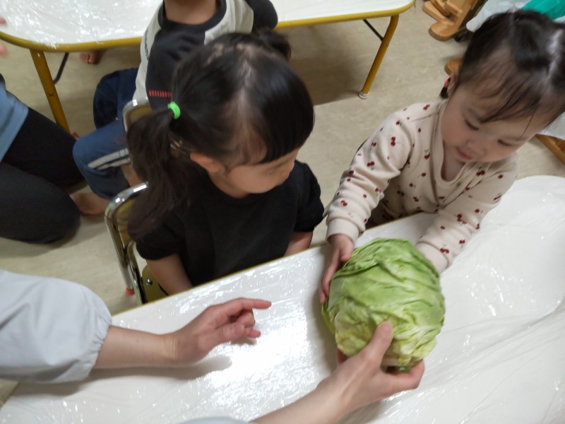 絵本に出てきたキャベツと本物のキャベツとを見比べて観察👀