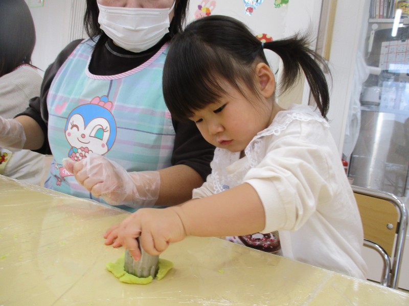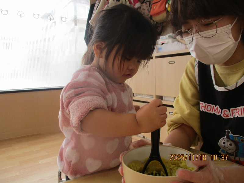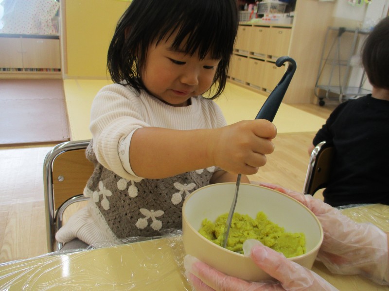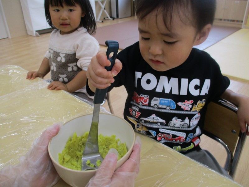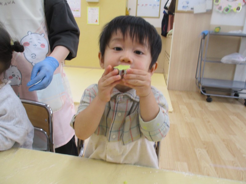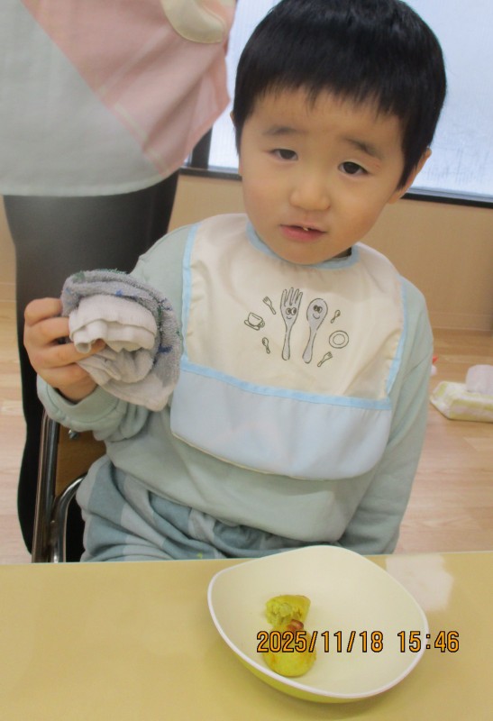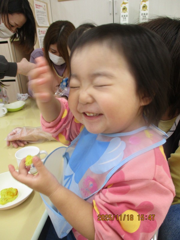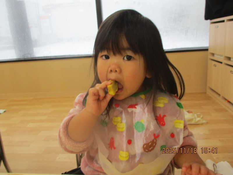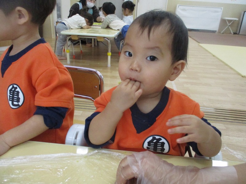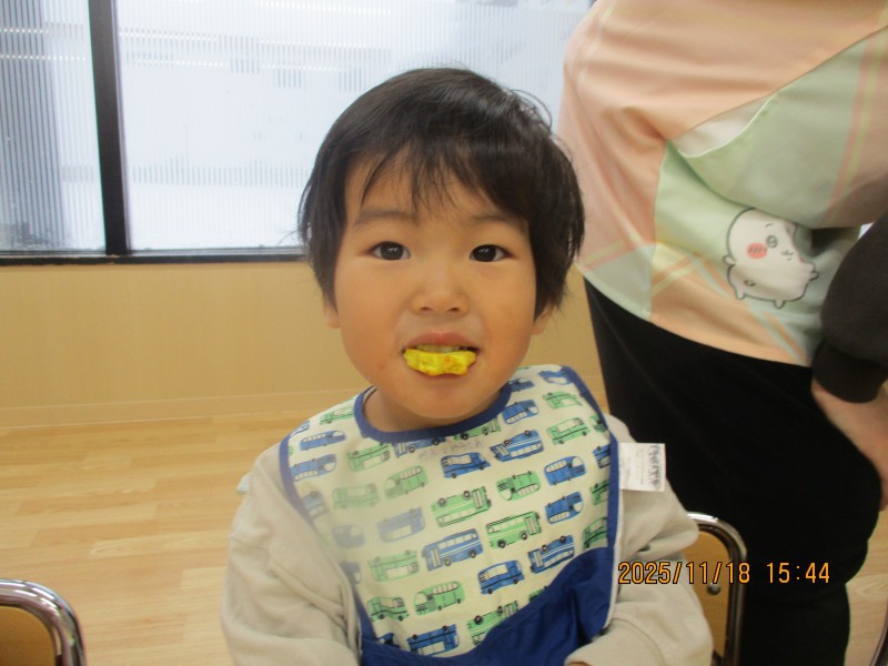 おばけの形をしたおにぎりやハンバーグをみんな喜んで食べていました😁