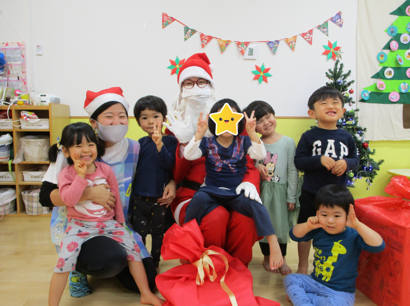 昨日のクリスマスイブ、保育園にサンタさんが来てくれました。