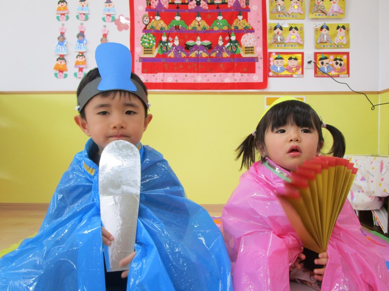 イベント 日付:2022.04.22 うれし、たのしい、ひなまつり🌸 遅くなりましたが、3月にひな祭り会をしました。皆で、おひなさまになりました。衣装を着けるのを嫌がる子もいましたが、なんとかパチリ。皆、とても可愛いですね。