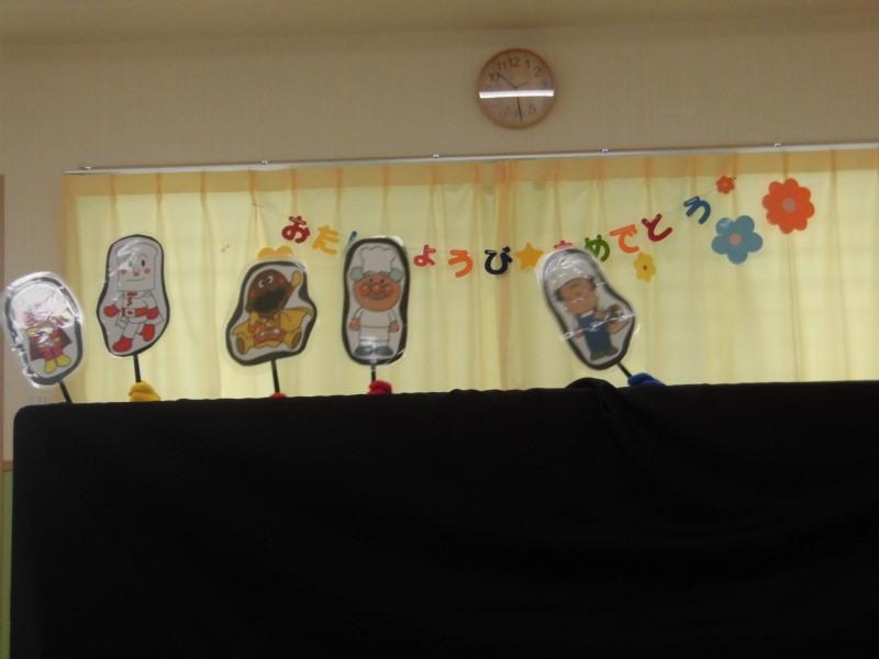 🎏5月生まれの誕生会を行いました。🍰Happy birthday💐今月も誕生児は二人でした。皆からお祝いされ、恥ずかしそうにしながらも、ちゃんとインタビューを受けることができましたよ。可愛い手で、4歳・2歳をアピールしていました。職員のアトラクションは、パネルシアター「大きなカブ」「こいのぼり」、お話小道具「いないいばぁ」「コートのお話」でした。カブが抜けるまで、皆で「うんとこしょ!どっこいしょ!」と掛け声をかけてくれました。
