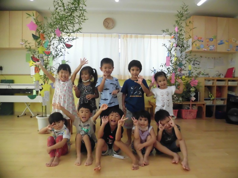 🌕7月7日七夕集会を行いました。「たなばた」の歌を歌っている時💁北中城園に乙姫様がやってきて、子供たちも大興奮‼お金持ちになりたい子、高級車に乗りたい子、ウルトラマンやアンパンマンになりたい子、消防士や警察官になりたい子…恥ずかしがりながらも、乙姫様に伝えることができました。たくさんの幸せな夢・願い事がかなうといいなぁ~💖
