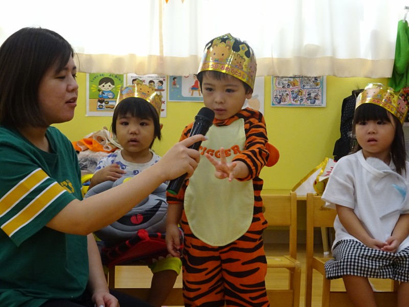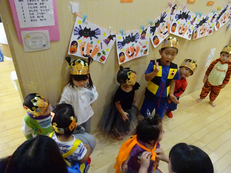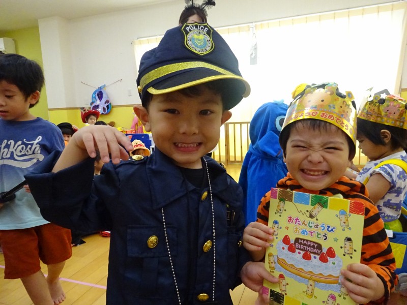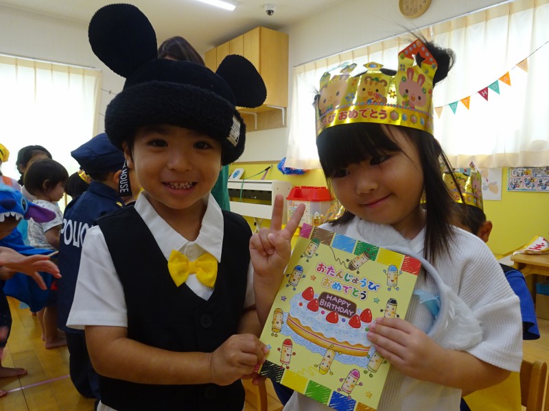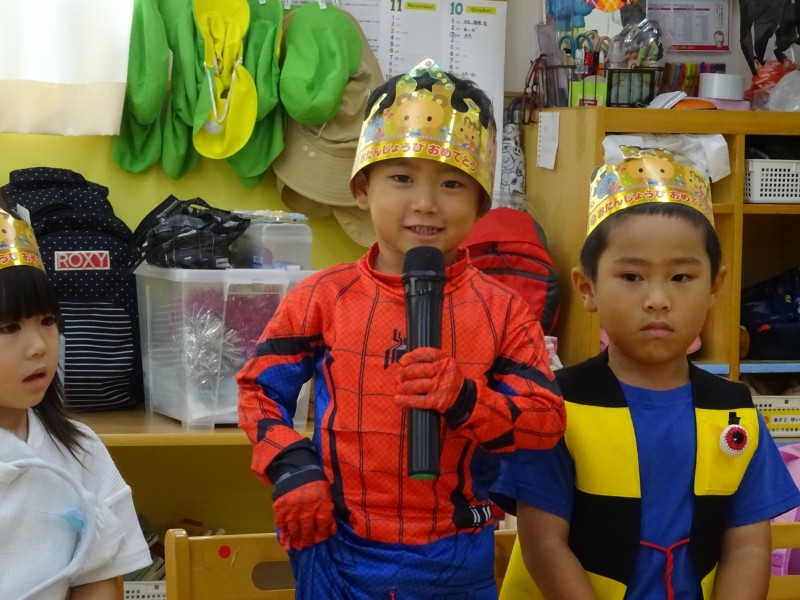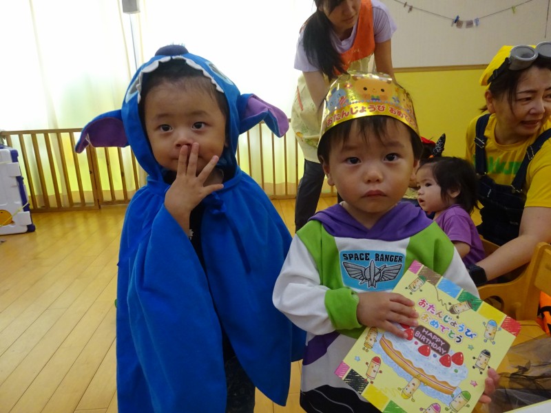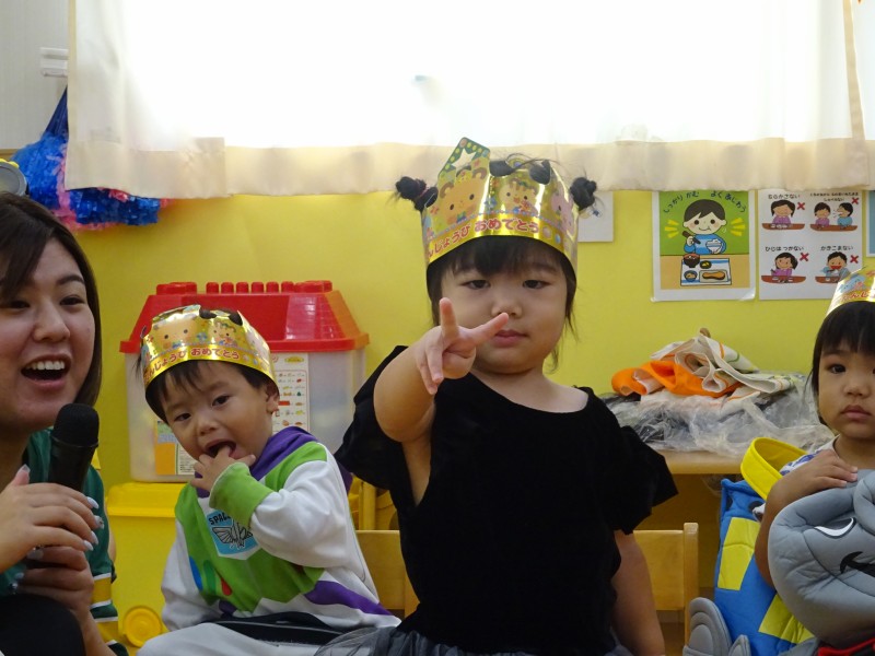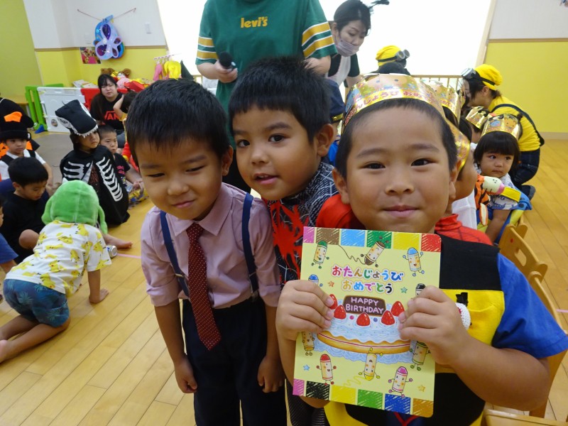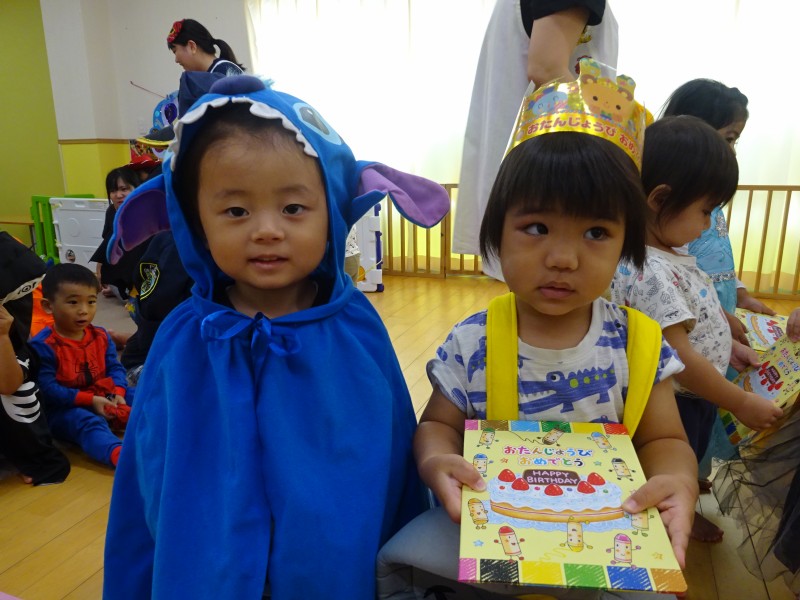 ハローウィンパーティーの為にかわいく仮装していたので、いつもより握やかな誕生会になりました💕