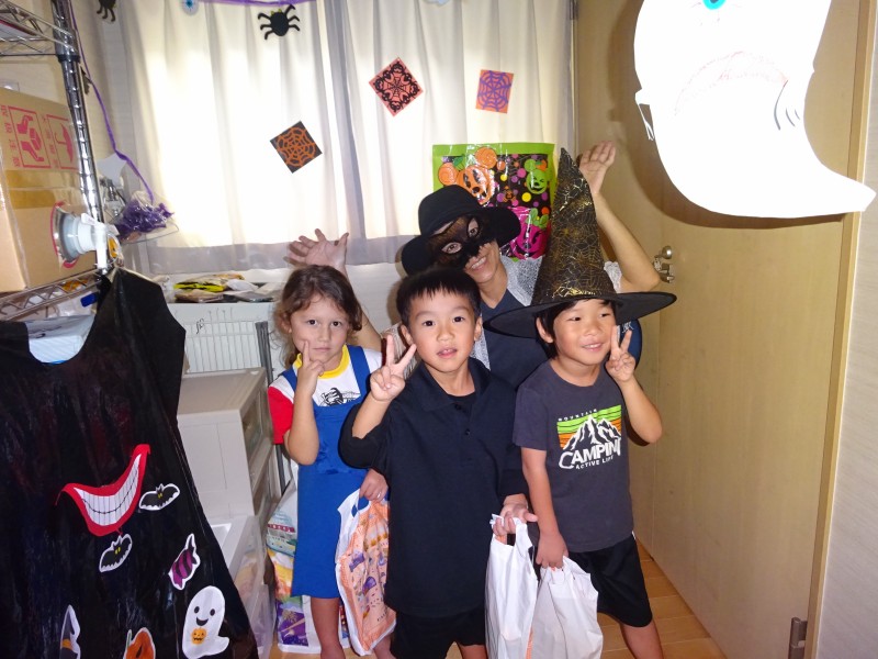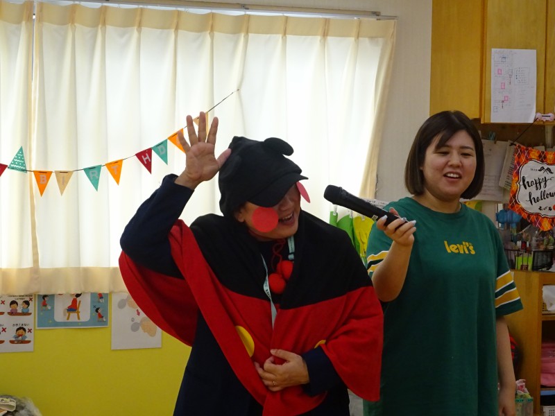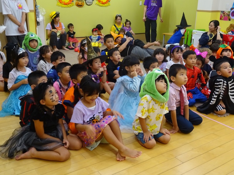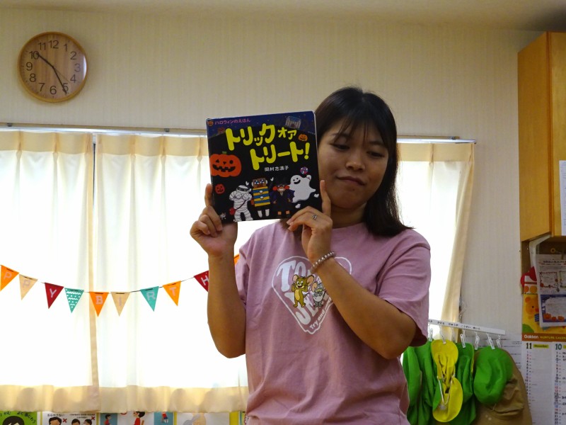 ハローウィンパーティーでは、はじめに「トリックオアトリート」の絵本を読み聞かせしました。
