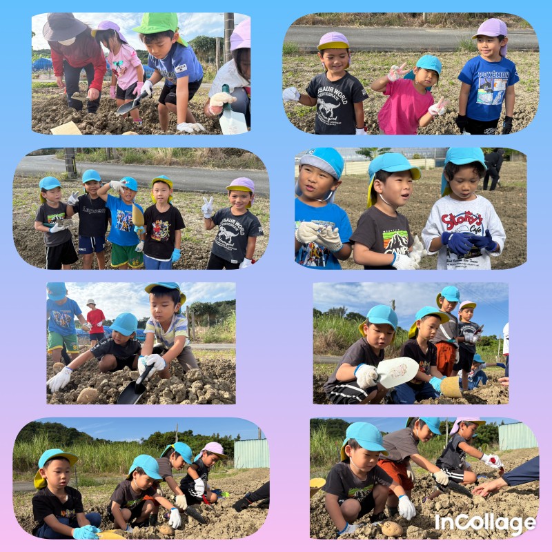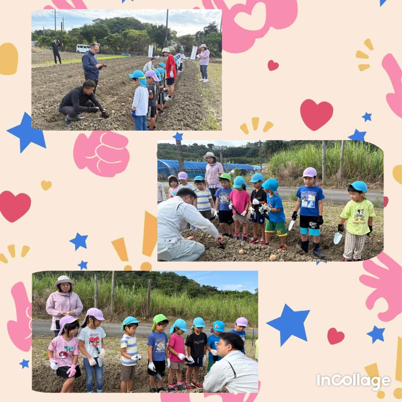 その他 日付:2026.01.12 ジャガイモ🥔植え付け体験(ぞう・きりん組) JA共済地域貢献活動の一環で 11月にぞうぐみ・きりんぐみさんがジャガイモ🥔植え付けの体験をしましたよ。✌️ JAの職員さんのお話を興味深く聞き、真剣な表情を見せていました。👦 いよいよ植え付けが始まると、目を輝かせながら✨スコップを手にゴロゴロとした硬い土を一生懸命掘り、ジャガイモの種植えを楽しんでいました。 土の感触を味わいながら、収穫への期待がふくらむ貴重な体験となりました。💑収穫予定は2月で~す👆