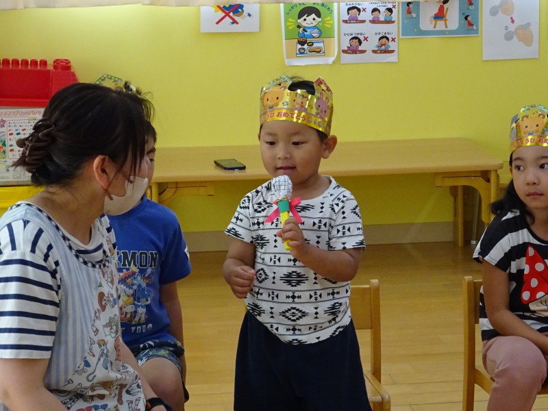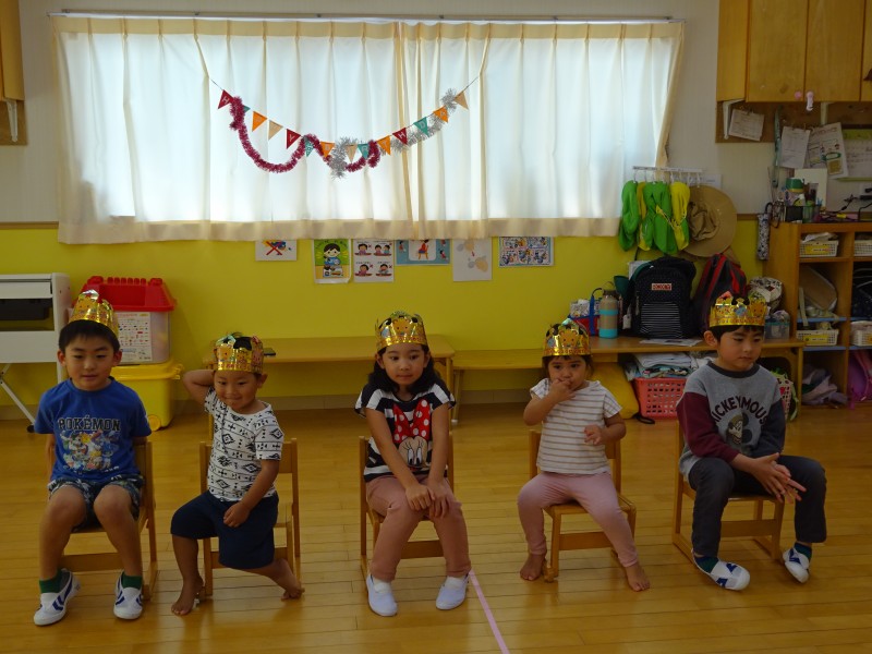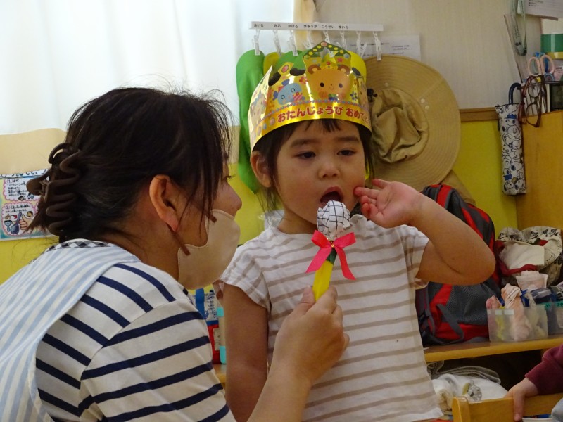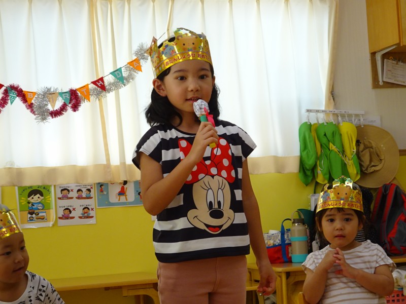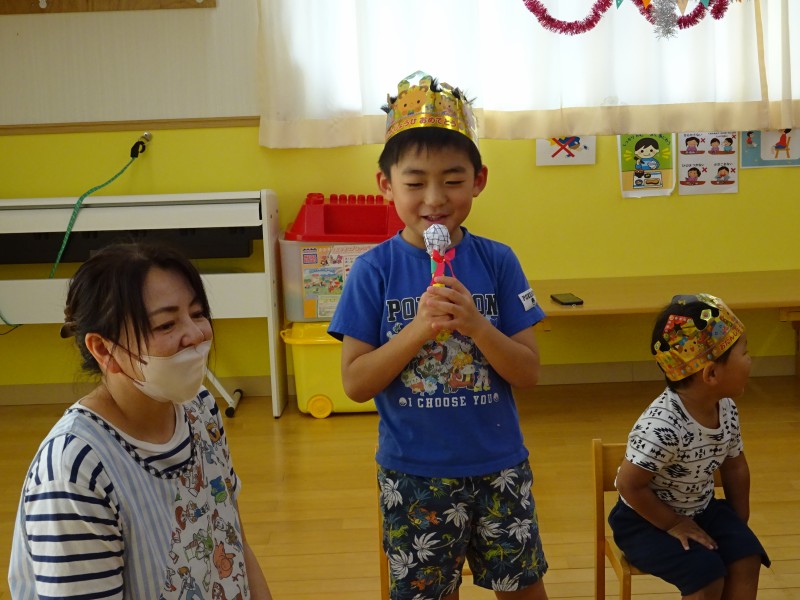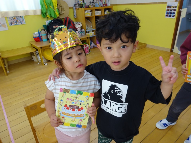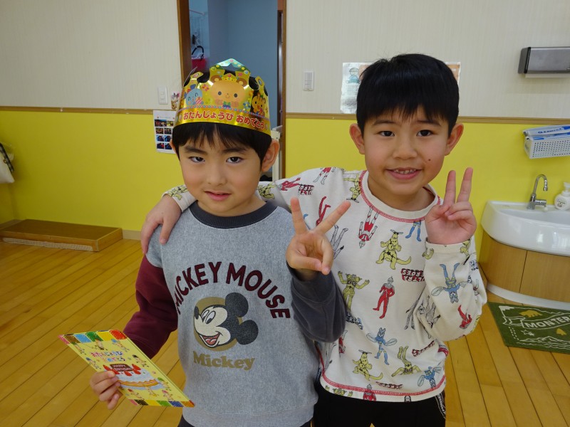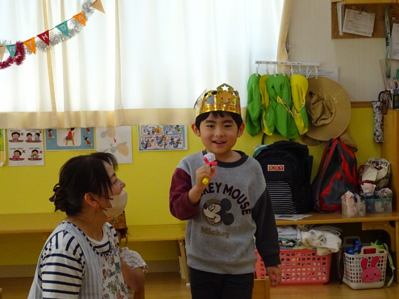 今年度最後の誕生会を行いました。今月は4名と、先月参加できなかったお友だち1名の計5名の誕生児を、みんなで楽しくお祝いしました。