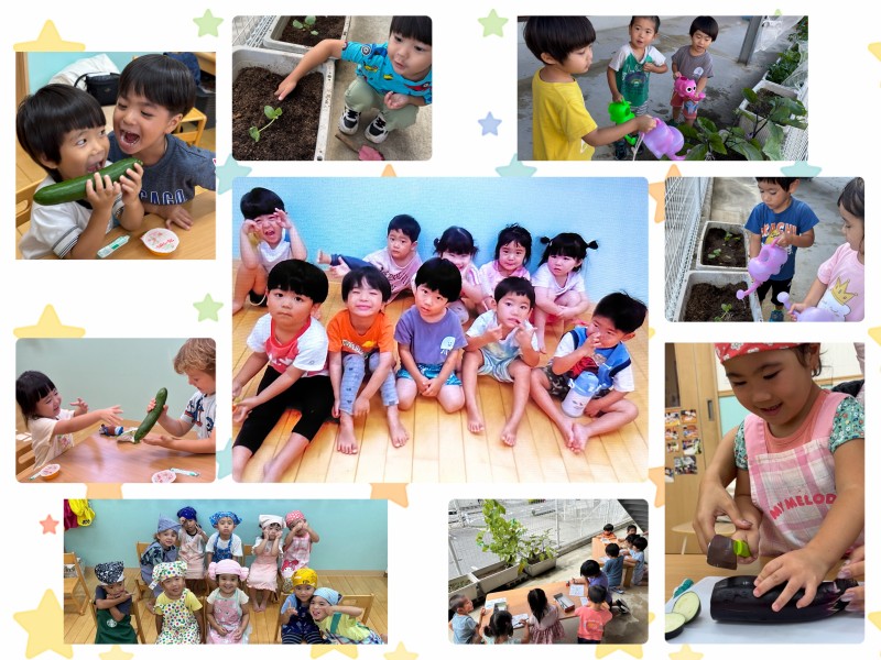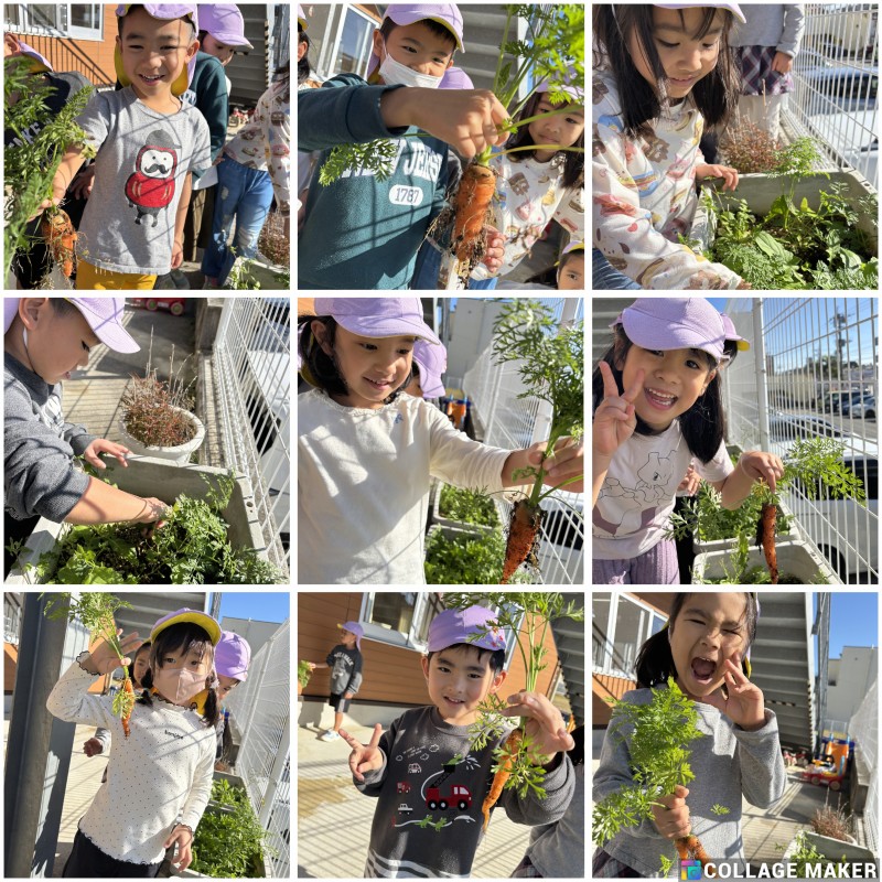 にんじん、ピーマン、ナス、小松菜などたくさんの野菜を育ててきました🍆生長する喜びと収穫する楽しさを味わいながら、収穫した野菜を使ったクッキングも楽しみました🫑初めての包丁も一緒に行いながら上手に切ることができました🧑🍳