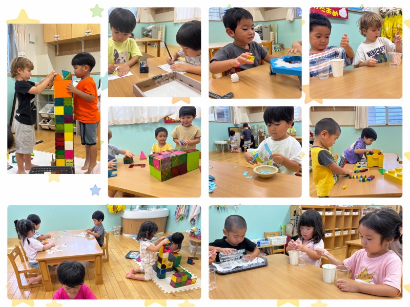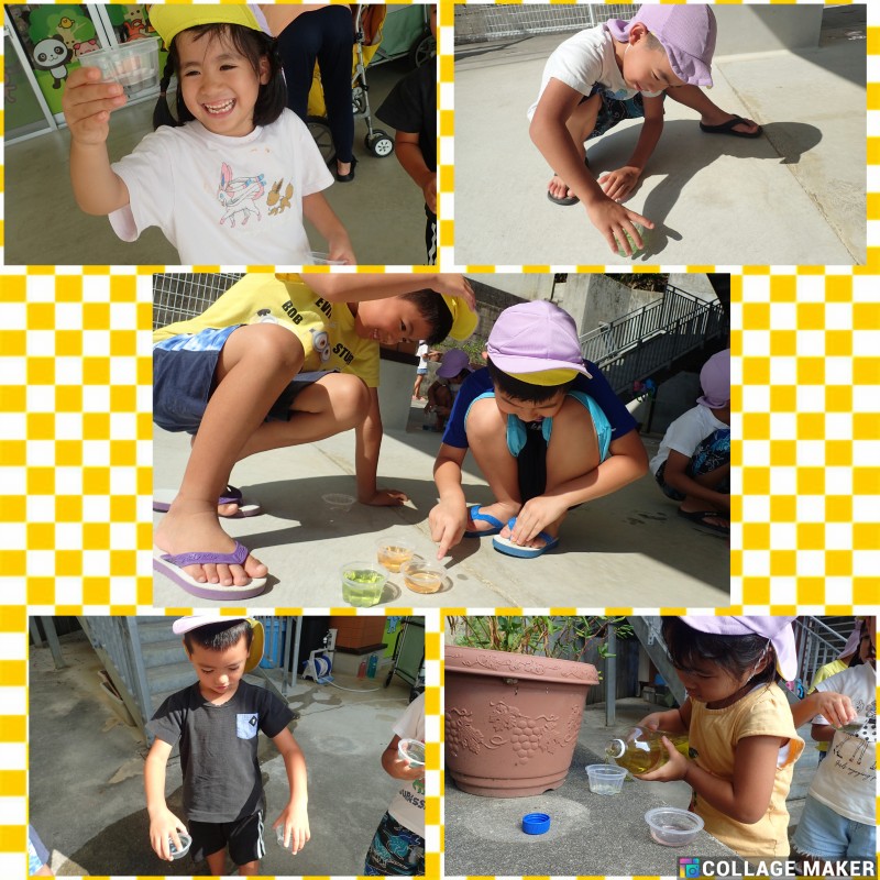 色水遊びも楽しみました♪混ぜた時の色の変化や、水が反射して出来た影の色も興味津々でたくさん楽しんでいましたよ😄