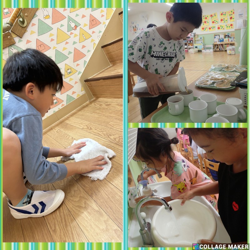 ぞう組に進級し、年長さんだと張り切る子ども達!1年を通してたくさんのお手伝いやお当番、掃除などを頑張ってくれました✨お当番の日を楽しみに登園する子もいましたよ☺️