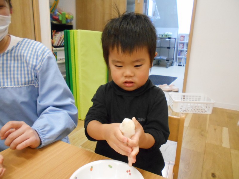 保育士が見本を見せると真似っこしてくれたり、初めての制作も泣かずに楽しんで行えるようになりました![]()