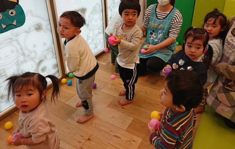 制作では小さい丸シールを自分で剥がして貼ったり、目・口を正しい位置にしっかり貼ったりすることができるようになってきました![]()