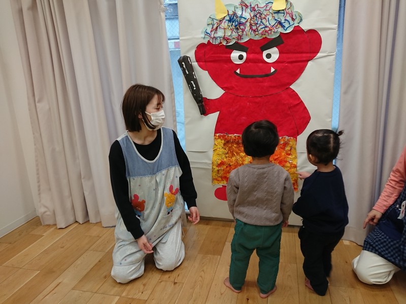 こわ~いお顔の鬼さんを見て泣いてしまうお友だちもいましたが、