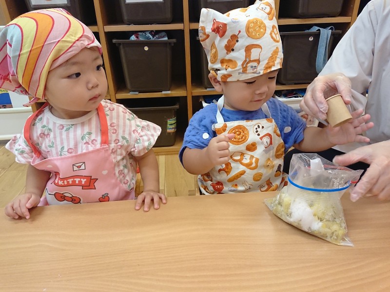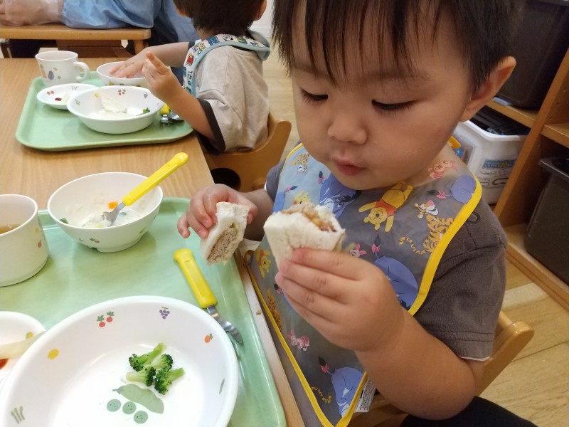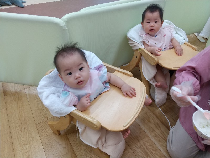 ひよこ組さんは給食のお友達が増えてにぎやかになりました🐤