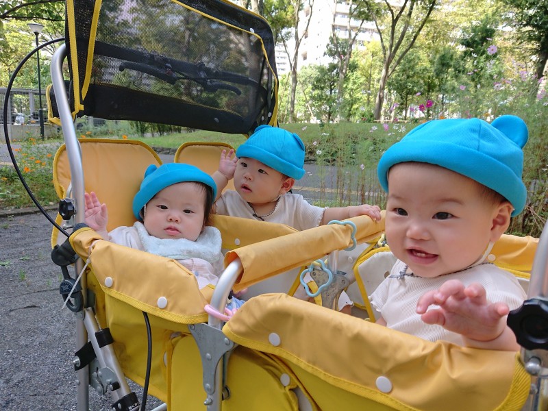 最初はバギーに乗ると泣いていたけど、今では笑顔で乗れるようになったよね![]()