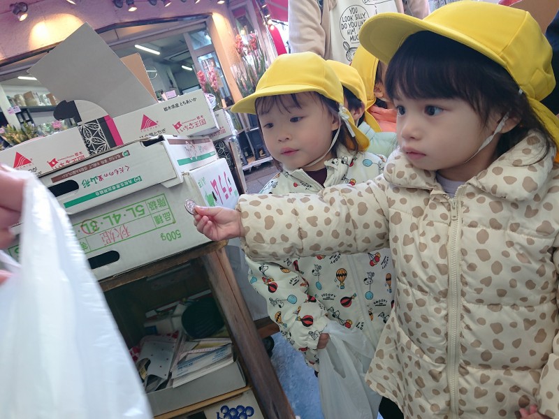 りす組さんと同様に、先生にお金をもらって支払い、みかんを袋に入れて渡してもらいました🌟
