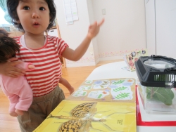 かごの中にいるあおむしに釘づけ状態(笑)