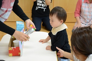 何が起こるんだろう…?と不思議そうにしながらも、ボールを入れていく子ども達。。。