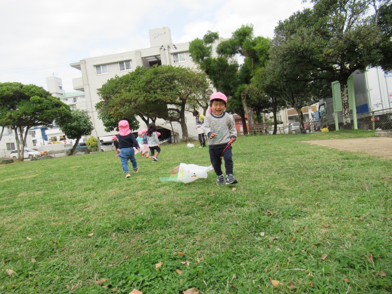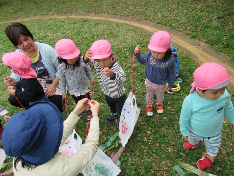 風があまり無かったのですが、うさぎ組さんの全力疾走で凧は高く舞い上がっていました✨