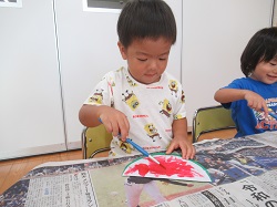 筆を使って絵の具で上手に塗っている姿がお兄ちゃん、お姉ちゃんですね💗