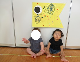 クラスごとにマーカーでお絵描きしたり、シールを貼ったり♪