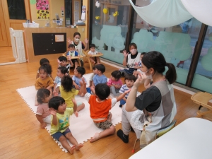 イベント 日付:2024.05.25 🎂5月生まれのお誕生日会🎂 22日(水)に5月生まれのお誕生日会がありました🎂 今月のお誕生児のお友だちはこちら✨ カッコイイ・可愛い洋服を着ての参加✨ プチファッションショーもしました🥰 インタビューをされて嬉しそうに答える2人♡ みんなにお歌を歌ってもらいながらケーキに“ふぅ~” もしましたよ🥰 その後は、先生からの出し物を楽しみました♬ 先生と一緒にお歌を歌いながら楽しんでいましたよ✨ 5月生まれのお友だちお誕生日おめでとう🎊 これからもすくすく大きくなぁ~れ🥰