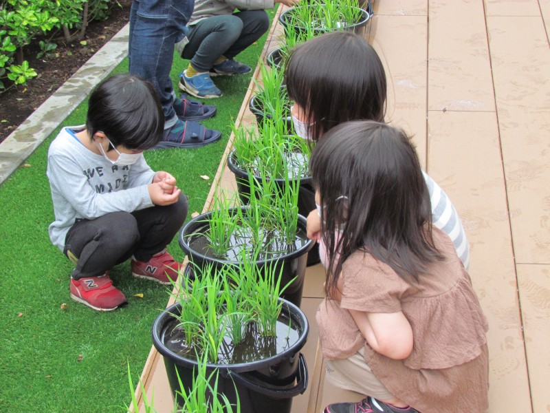 4月末、3・4歳児クラスの子どもたちが田植えを体験🌾