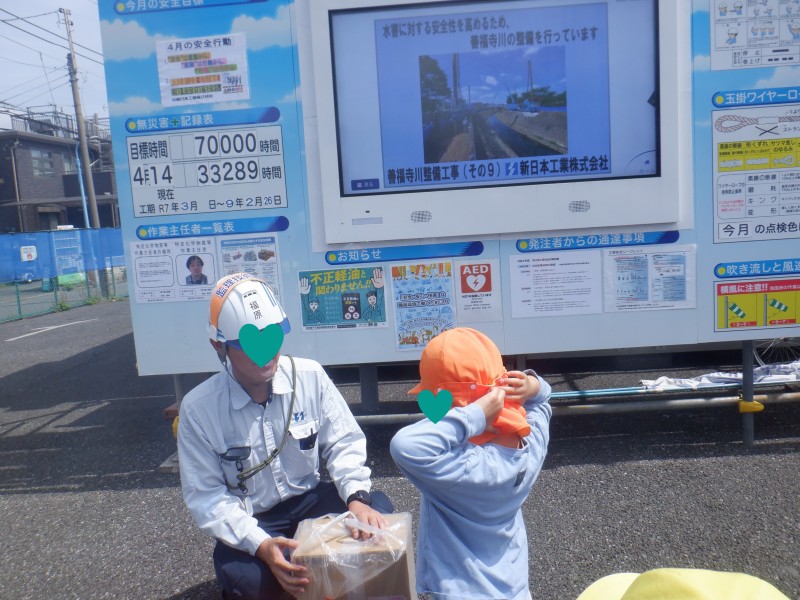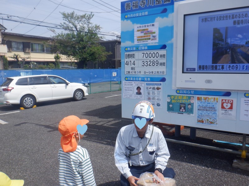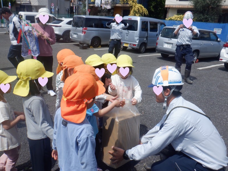 その他 日付:2026.04.16 なんのさかながすきですか? 近くを流れる善福寺川の工事現場の方との交流を実行!工事の内容を教わりながら、いざ質問タイムへ・・。 しかし出てくる言葉は「なにがすきですか」というのが子どもたちの質問(笑) これにはかっこいい作業員さんたちも笑みがこぼれます。 「川にちなんだ質問は?」と保育士・・。 「すきなさかなはなんですか」「あじです」 と、これまたかわいい質問に穏やかな時間が流れました。