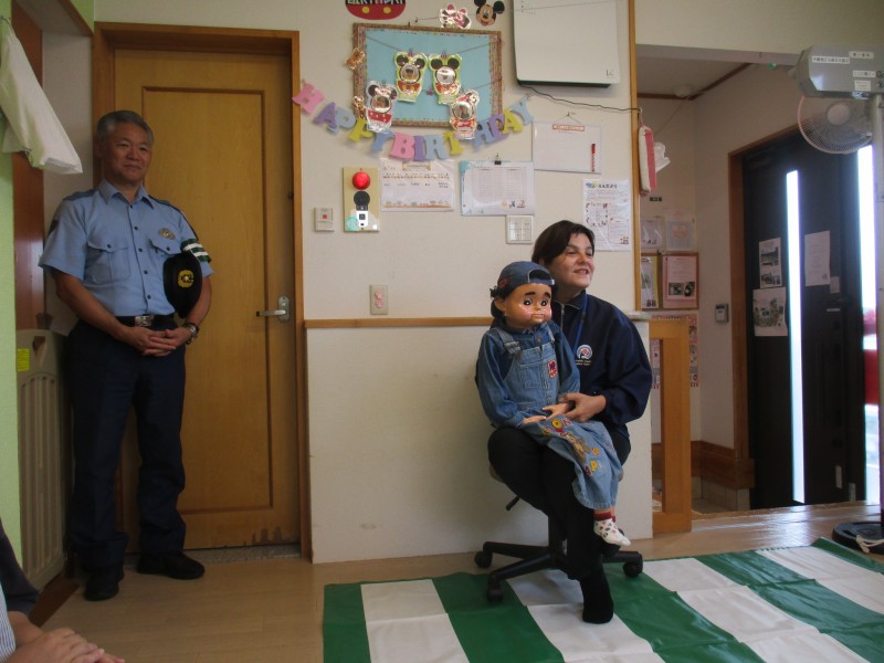 近くでおまわりさんを見て、少しドキドキの子どもたち😆